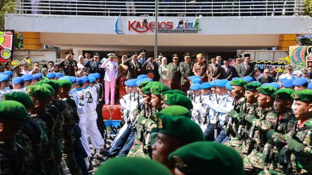 INKAM, MAKASSAR – Wali Kota Makassar, Moh Ramdhan Pomanto menghadiri Upacara, Parade dan Defile HUT TNI ke-78 tahun di Karebosi, Kamis, (5/10/2023).