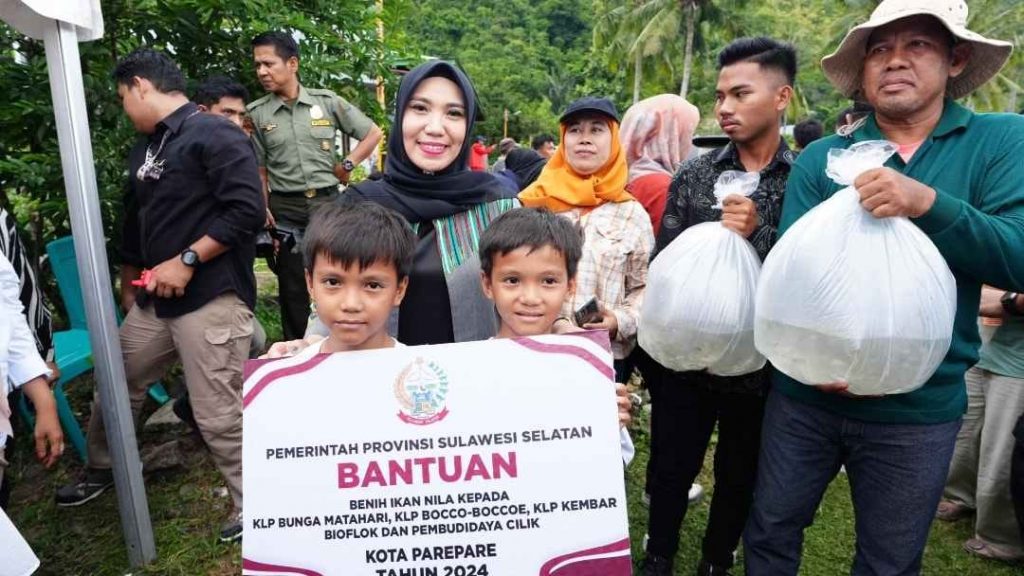 Juga diserahkan bantuan benur vaname kepada sejumlah kelompok masyarakat, diantaranya Kembar Hidroponik Kota Parepare.