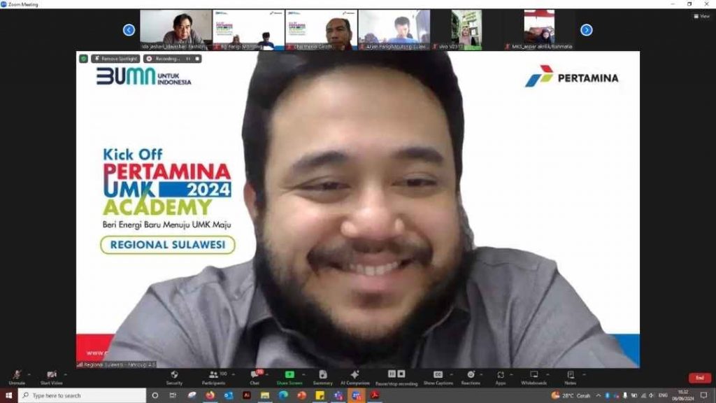 INKAM, MAKASSAR – PT Pertamina (Persero) melalui PT Pertamina Patra Niaga Regional Sulawesi, bersama Rumah BUMN Pertamina di Sulawesi, melakukan kick off pelaksanaan kegiatan UMK Academy Pertamina Tahun 2024 skala Regional Sulawesi, dilakukan secara daring pada Kamis (6/6/2024).