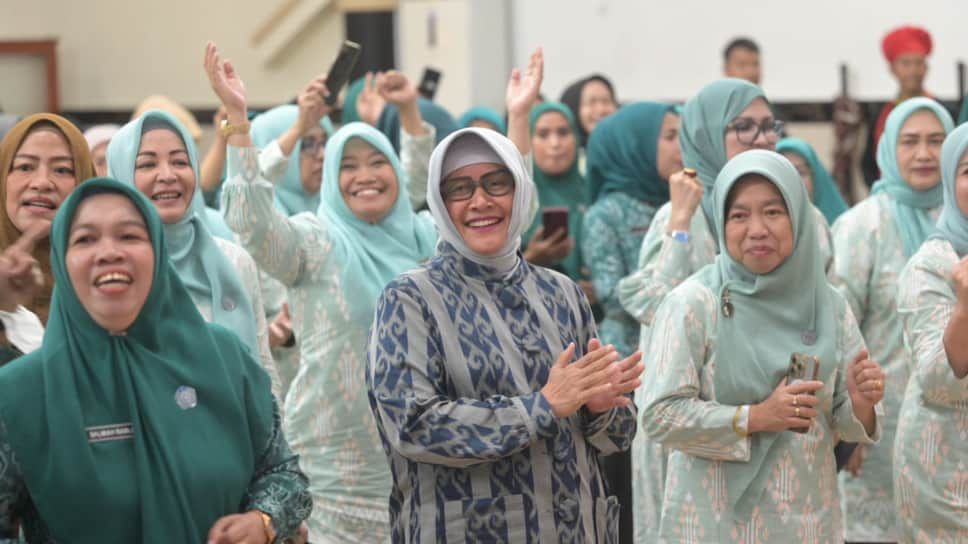 INKAM, MAKASSAR – Ketua TP PKK Kota Makassar, Indira Yusuf Ismail, meriahkan suasana Bimbingan Teknis (Bimtek) Pokja III, dengan membagikan doorprize undian kepada sejumlah peserta yang beruntung.