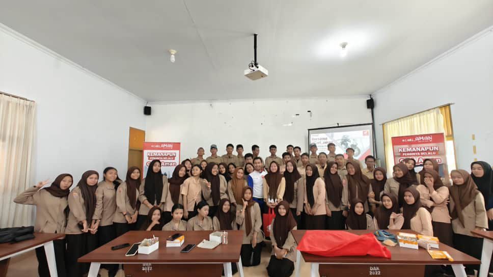 Salah satu bentuk kolaborasi ini, diwujudkan melalui edukasi safety riding, bagi siswa SMK 5 Makassar dan SMK 6 Makassar.