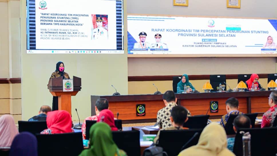 Dalam rapat koordinasi, Wakil Gubernur Sulawesi Selatan selaku Ketua Tim Percepatan Penurunan Stunting (TPPS) Provinsi Sulsel, melakukan monitoring dan evaluasi (monev), terhadap aksi percepatan penurunan stunting di tingkat kabupaten/kota.