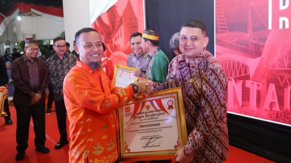 Penghargaan tersebut diserahkan langsung oleh Gubernur Sulsel, Andi Sudirman Sulaiman, kepada Wali Kota Munafri Arifuddin pada malam ramah tamah kenegaraan yang digelar di Pelataran Merah Putih, Rumah Jabatan Gubernur Sulsel, Jalan Jenderal Sudirman, Makassar, Minggu (17/8/2025) malam.