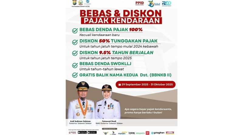 Baca SelengkapnyaMAKASSAR, INKAM — Pemerintah Provinsi Sulawesi Selatan resmi memberlakukan insentif Pajak Kendaraan Bermotor (PKB) mulai 29 September hingga 31 Oktober