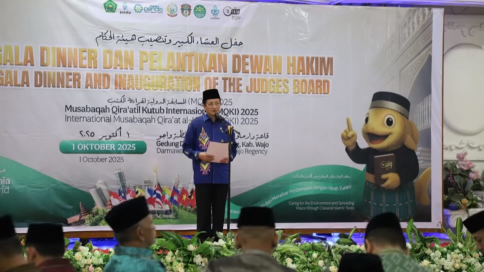WAJO, INKAM – Sebanyak 89 dewan hakim Musabaqah Qira’atil Kutub Internasional (MQKI) 2025 resmi dilantik di Gedung Serbaguna Dermawan, Kabupaten Wajo, Sulawesi Selatan, Rabu (1/10/2025) malam.