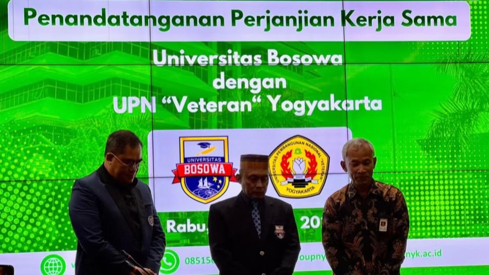 YOGYAKARTA, INKAM — Universitas Bosowa (Unibos) terus memperkuat kiprahnya dalam dunia pendidikan tinggi nasional. Kali ini, Unibos resmi menjalin kerja sama strategis dengan Universitas Pembangunan Nasional (UPN) “Veteran” Yogyakarta melalui penandatanganan perjanjian kerja sama, Rabu (14/10/2025), di Kampus UPN “Veteran” Yogyakarta.