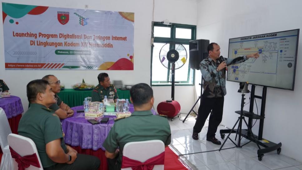 MAKASSAR, INKAM — Pangdam XIV/Hasanuddin, Mayjen TNI Windiyatno, resmi meluncurkan Program Digitalisasi dan Jaringan Internet di lingkungan Kodam XIV/Hasanuddin.