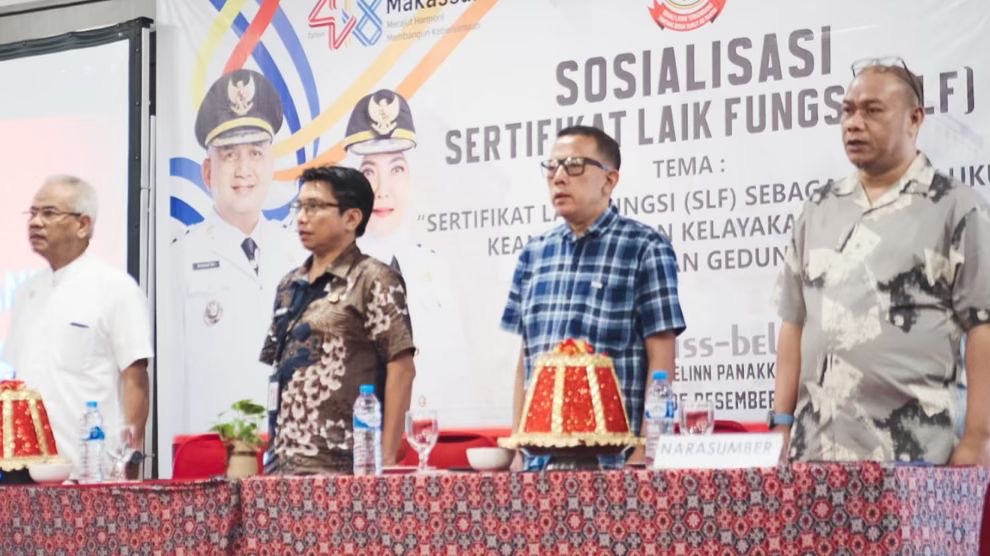 MAKASSAR, INKAM – Pemerintah Kota Makassar melalui Dinas Penataan Ruang (Distaru) menggelar Sosialisasi Sertifikat Laik Fungsi (SLF) di Hotel Swiss-Belinn Panakkukang, Jumat (5/12/2025).